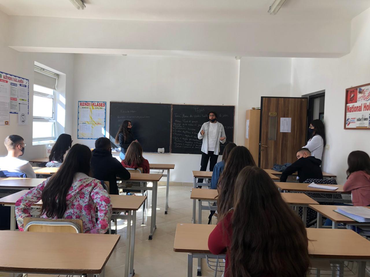 Following the survey and Summer Camp Activity, the Informative sessions on EU integration process and role of youth are organized in four regions of Albania (promotional materials, leaflets, banners, pins, designed and delivered). The information sessions are held at high schools, providing information through visual presentation, informative leaflets and posters and other visibility items. Participants of EU4AL summer camp shared their experience with their youth peers in Ballsh, Fier, Kruje by promoting EU values such as volunteering, participation and engagement. This activity is published in e media and social media. Please follow the Links to learn more about this activity and read publications: